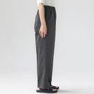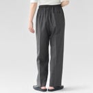 清楚で上品な印象を演出するきれいめデザインに、落ち着いたカラーバリエーションが人気の定番ボトム。 ウエストはリラックス感のあるゴム仕様で、長時間の着用も快適です。薄手の生地感で暑い季節にもぴったり。裾にワンクッションを効かせた美しいシルエットで、お仕事にも着用いただける大人のスタイルを格上げする一本です。