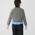 上品な光沢のブロード素材と、ナチュラルな風合いのコットンリネンニットを組み合わせた、新鮮なデザインのカーディガン。短めの着丈とダブルボタンが絶妙なバランスを生み、さっと羽織るだけで洗練された印象に仕上がり、トラッドな雰囲気も漂う一着。深めのVネックでさまざまなインナーと好相性。パンツにもスカートにも合わせやすく、手洗い可能でデイリーにも活躍する着回し力の高いアイテムです。