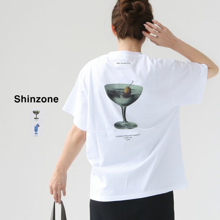 夏の夕暮れに映える、カクテルをテーマにしたスーベニア風Tシャツ。SHINZONEらしい遊び心が詰まった一枚。ゆったりとした袖とシルエットで、抜け感のある大人カジュアルを演出します。