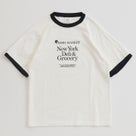 ラグランスリーブのリンガーデザインに、ニューヨークの架空スーパーをイメージしたグラフィックを落とし込んだ一枚。程よいユーモアと存在感がコーデのアクセントになり、シンプルな装いを引き立てます。
