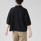 通気性に優れたハイゲージ鹿の子素材で、凹凸のある表面がさらっとした肌触りを実現。ドルマンスリーブとAラインでゆとりがあり動きやすく、短め丈でバランス良く着用可能。日常から外出まで快適に着回せる一枚。