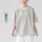 PRIT 14/1空紡度詰天竺ミジンボーダー 5分袖クルーネックプルオーバー P91551は、ナチュラルなスタイルを愛する方にぴったりの一枚。細やかなミジンボーダー柄が上品な印象を与えつつ、カジュアルなコーディネートにも自然に馴染みます。
