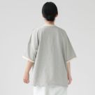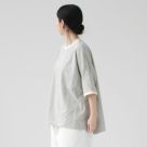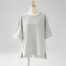 軽やかで柔らかな着心地が特徴の14/1空紡度詰天竺素材を使用。ゆったりとしたシルエットが体型をさりげなくカバーし、リラックス感のある着こなしを実現。5分袖デザインで腕周りも涼しく、これからの季節に重宝するアイテムです。