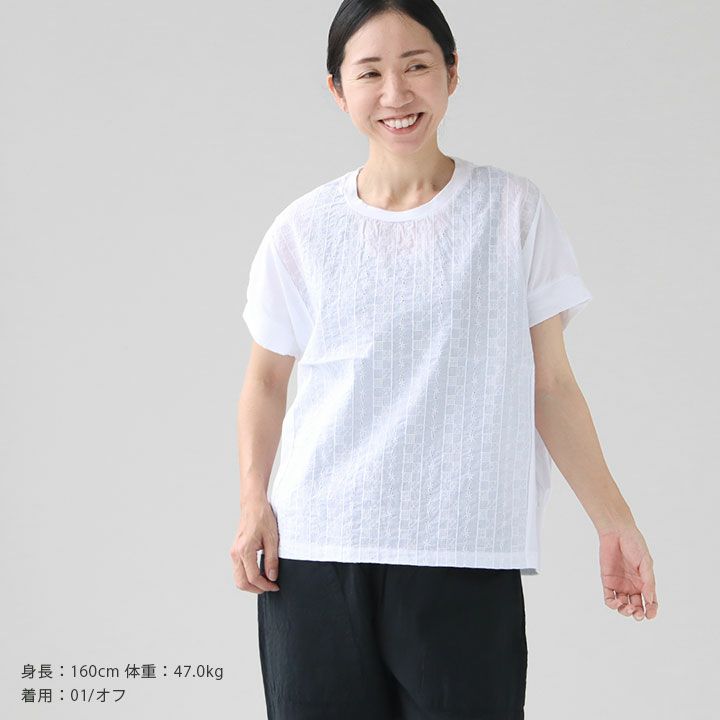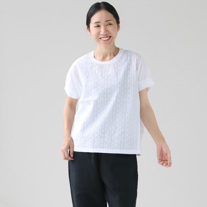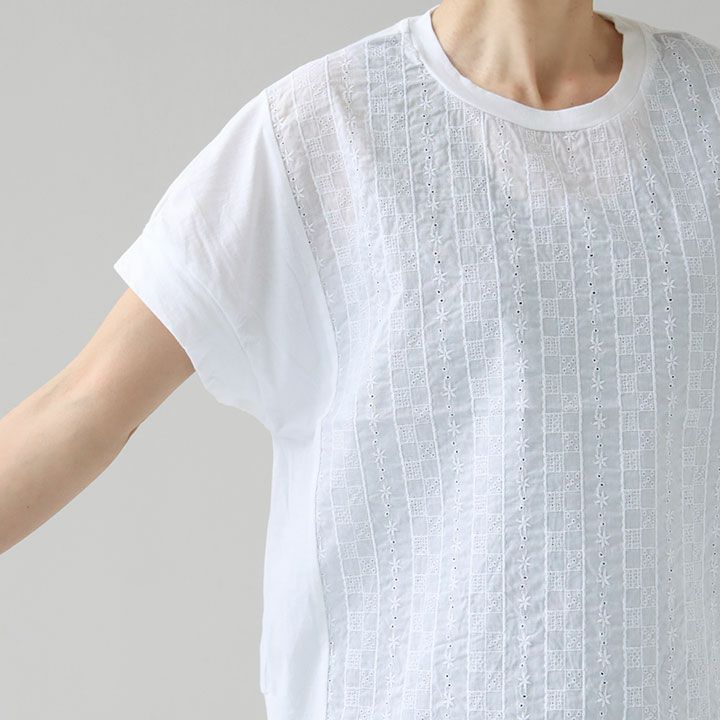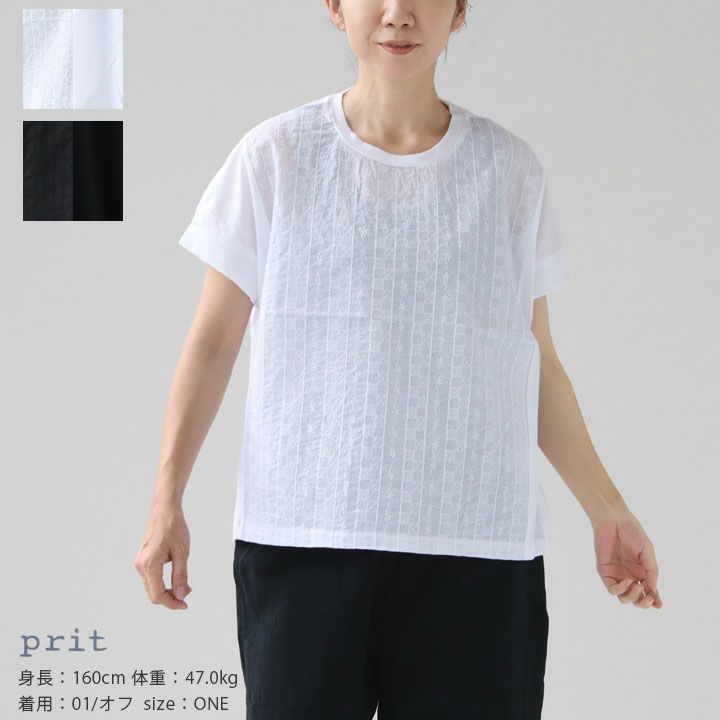 他の画像を見る [正規取扱店][メール便配送1点まで可能] PRIT(プリット) 40/1ハイゲージ天竺×60/1ローンパターンフラワー刺繍 切替ショートスリーブプルオーバー(P92430) SOLD OUT 価格 ¥ 7,590 税込 0件のレビュー お気に入りに登録する