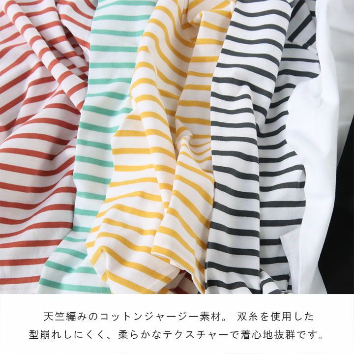 シンプルなプルオーバーや着回しやすい無地、ボーダーといった定番アイテムから、ロゴやプリントで遊び心を加えたデザインまで、幅広いバリエーションを取り揃えています。季節の変わり目にはロングTシャツ、二の腕を自然にカバーする5分袖や上品な7分袖は、大人の女性に特におすすめ。また、寒い季節にもぴったりなタートルネックやハイネックも充実しています。