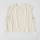 リネンの爽やかさと伸縮性を兼ね備えたシャンブレー生地の2wayベスト。前後着用が可能で、裾ひもを絞れば丸みのある女性らしいシルエットに。同素材のPRIT リネン混ストレッチシャンブレー タックバギーパンツとセットアップもおすすめです。