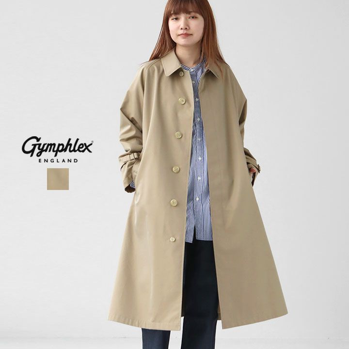 GYMPHLEX(ジムフレックス)のベルテッド バルマカーンコート。イギリスの乗馬用コートをベースにデザインされたクラシカルなコート。トレンチコートなどに用いられることの多い、コットンポリエステルを高密度に打ち込んだTCギャバジンを使用。ハリがあってシワになりにくく、着用時のシルエットを美しくキープします。ほんのり玉虫色の落ち着いた光沢感が優雅で品のある一着。