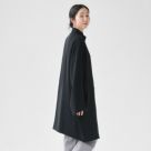 mizuiro indのスタンドカラーワイドジャケットは、シンプルながらも存在感のあるデザインが魅力。ゆったりとしたシルエットが春の軽やかなスタイルを引き立てます。ブラックカラーがもたらす上品な雰囲気で、カジュアルからフォーマルまで幅広く活躍。新しい季節にぴったりの、洗練された一着です。