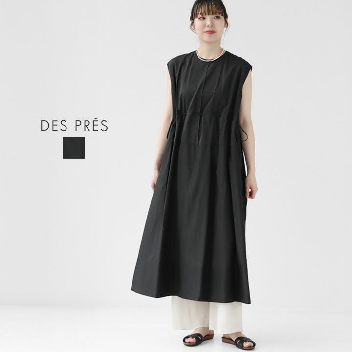 フロントアジャスターでシルエットの変化が楽しめるワンピース。ふんわり広がるフォルムと落ち着いたカラー、上品なノースリーブが大人の女性らしさを引き立てます。