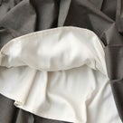 軽やかな生地には、細番手のTC混紡ローンを使用しており、特殊光沢タンブラー加工により上品な光沢感が実現されています。さらに、糸を染め分けることで、奥行きのある深みのある色合いを表現しています。