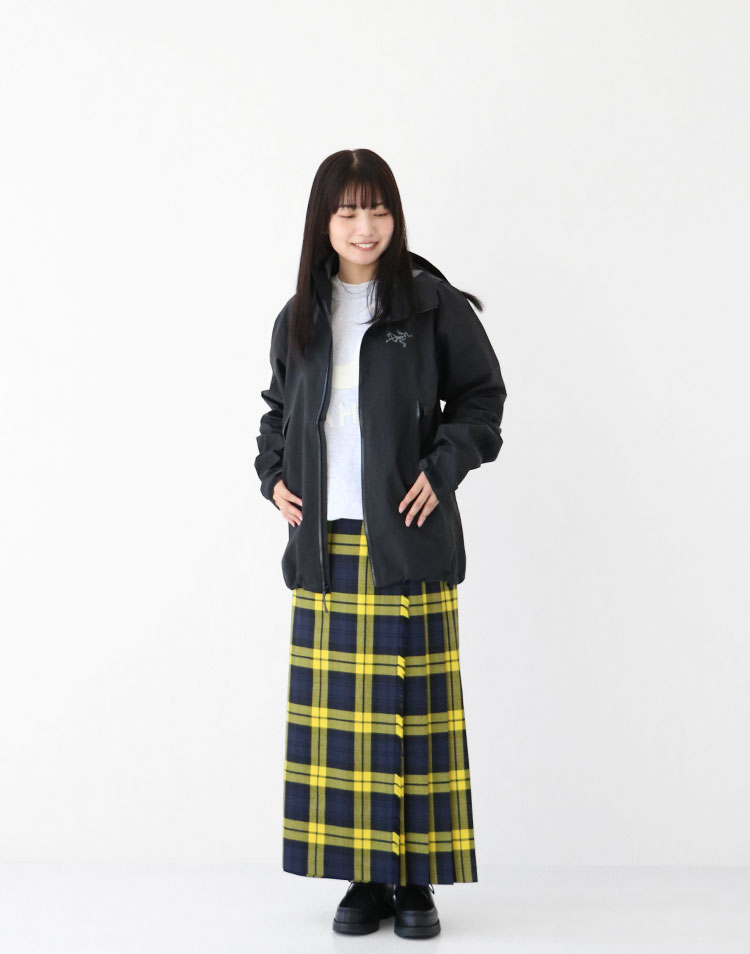スポーティーな印象のベータジャケットを使った、大人のミックススタイル。 華やかなイエローベースのチェック柄ロングスカートを合わせることで、女性らしさとトレンド感をプラスしました。 トラッドな雰囲気のあるオニールオブダブリンのスカートは、カジュアルなアイテムとも好相性◎ 洗練されたカジュアルスタイルを楽しめます。